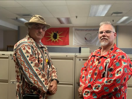 Le grand chef de la nation du Soleil Levant, Benoit Lavoie, en compagnie de Jocelyn Rioux. (Photo: courtoisie)